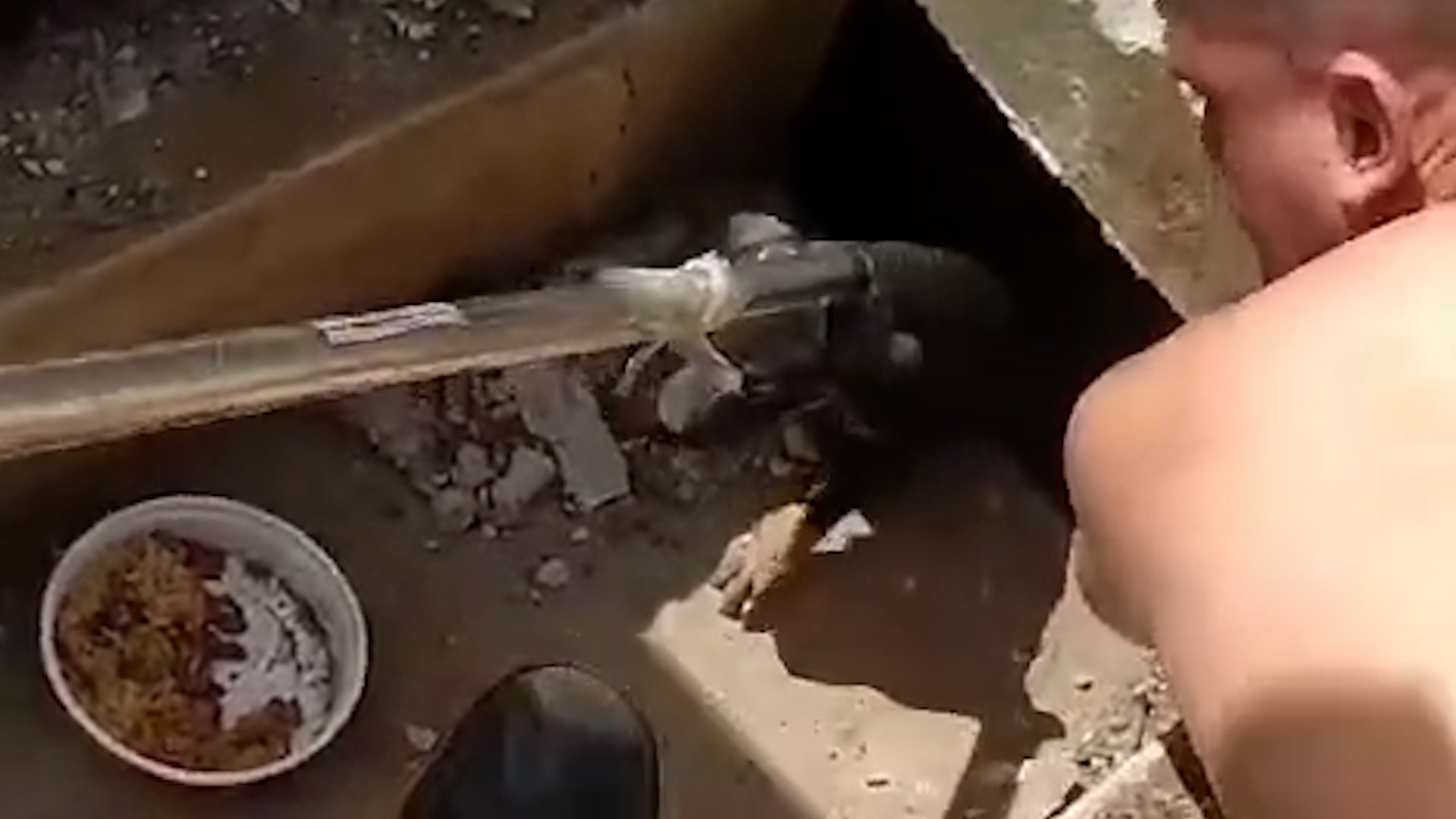 Filhote de cachorro fica preso em bueiro e é resgatado pelos bombeiros em João Pessoa; vídeo