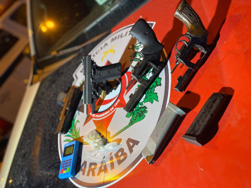 Uma espingarda e um revólver também foram apreendidos na zona sul da Capital. A primeira arma foi abandonada por criminosos que fugiram ao perceberem a chegada da PM em uma comunidade no bairro de Valentina de Figueiredo. Já a outra arma estava com um homem abordado e localizado com drogas, em Paratibe.