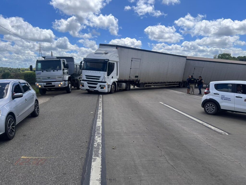 Acidente envolvendo caminhão bitrem bloqueia parcialmente BR-101 em Alhandra