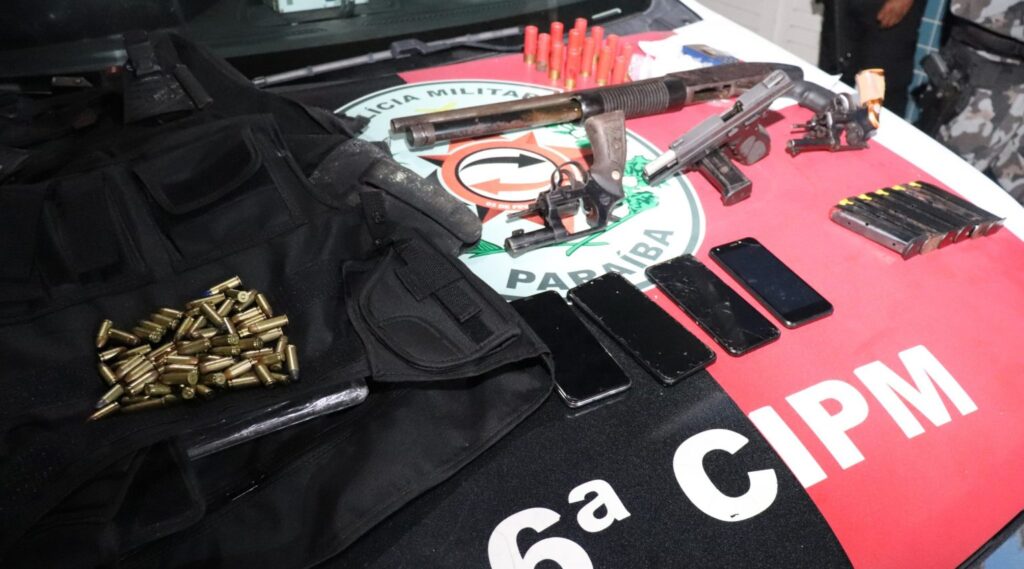 A Polícia Militar da Paraíba prendeu, na madrugada deste sábado (3), em Cabedelo, na região metropolitana de João Pessoa, cinco suspeitos que planejavam promover um ataque a tiros na Comunidade do Castelinho. Segundo informações, os suspeitos foram presos com quatro armas de fogo: dois revólveres, calibre 38; uma pistola, calibre 9mm; uma espingarda, calibre 12; três coletes balísticos e várias munições.