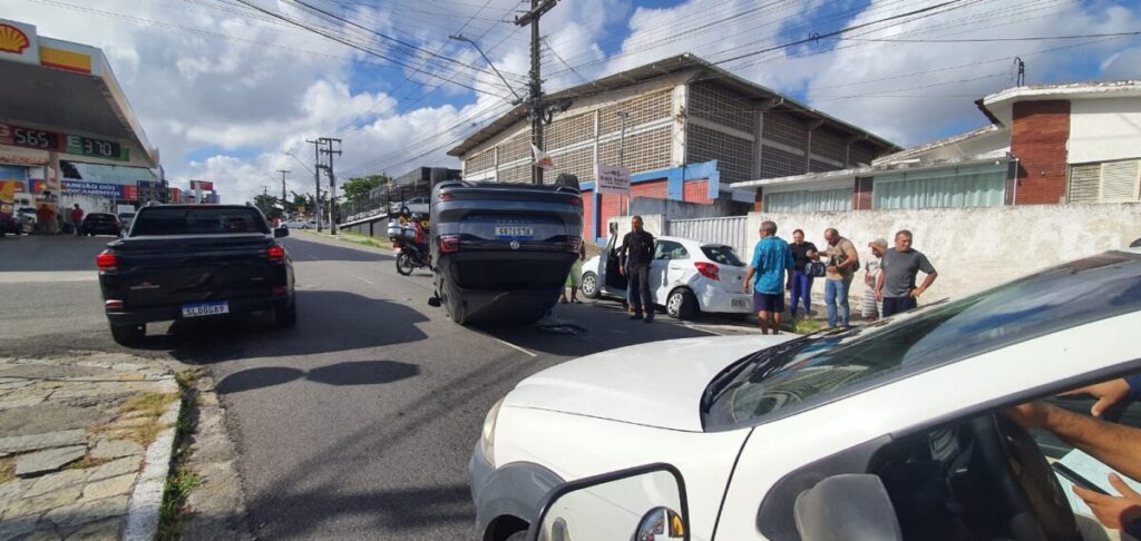 Um acidente envolvendo dois veículos resultou em um capotamento e deixou uma pessoa ferida no bairro dos Estados. A ocorrência aconteceu na manhã desta terça-feira (06), no cruzamento da avenida Joaquim Pires Ferreira com a rua José Resende. Uma equipe de paramédicos do Serviço de Atendimento Móvel de Urgência (Samu) foi acionada para resgatar a vítima.