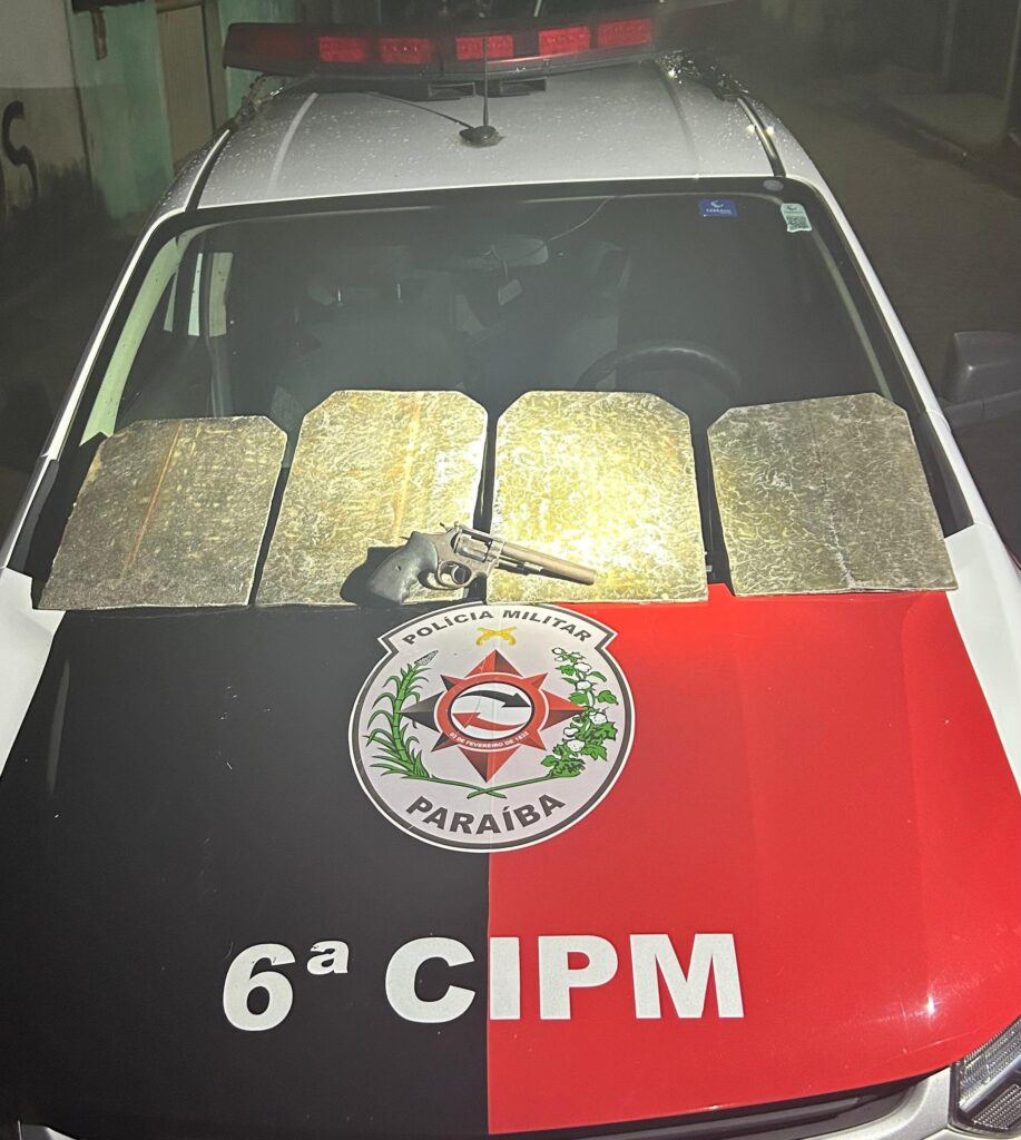 De acordo com a 6ª Companhia Independente, o material estava com um homem acusado de ameaçar moradores no bairro do Jacaré. O acusado foi denunciado e, durante as diligências da PM, fugiu abandonando o material em uma mochila. Um revólver e quatro placas balísticas artesanais foram apreendidas pelos policiais da 6ª CIPM.