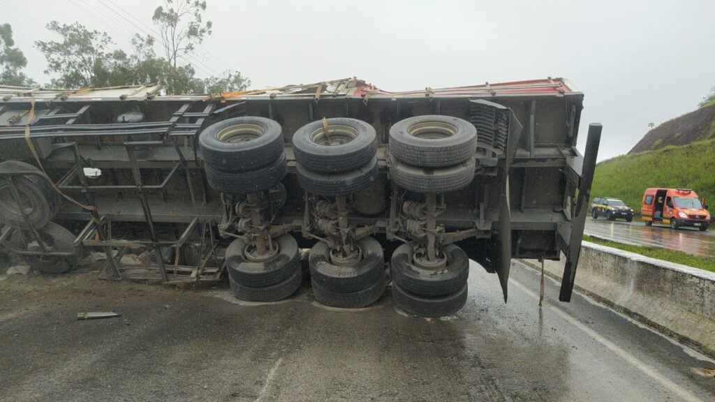 Acidente entre carreta carregada de cimento e caminhão bloqueia trecho da BR-101 sentido PB-PE