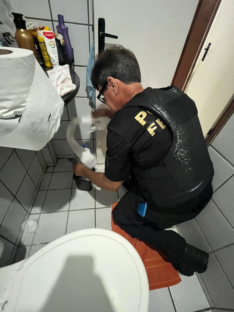 De acordo com o relatório, durante as buscas, uma das investigadas tentou esconder um telefone celular enrolado em papel higiênico dentro de uma lixeira, mas o aparelho foi localizado e apreendido pelos agentes.