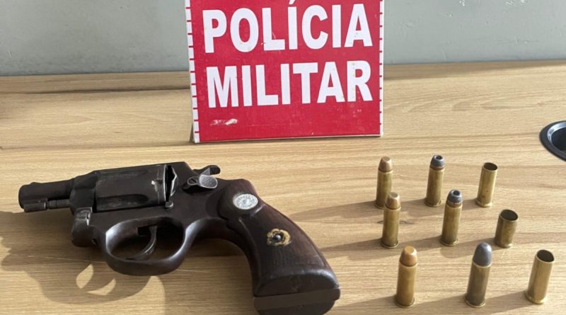 A equipe foi acionada para atender uma ocorrência de descumprimento de medida protetiva na zona rural do distrito de São Pedro. Ao realizar buscas na região, o acusado foi localizado com um revólver calibre 38 e algumas munições.