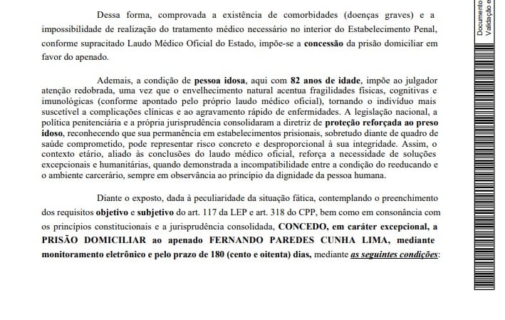 Na tarde desta sexta-feira (5), a Justiça concedeu prisão domiciliar ao médico Fernando Cunha Lima, condenado por estupro de vulnerável. A idade avançada do réu e seu estado de saúde foram os critérios avaliados para a decisão.
