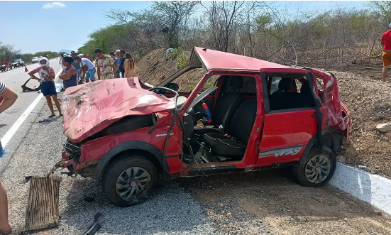 Capotamento na BR-427 deixa dois mortos e uma criança ferida no Sertão da Paraíba