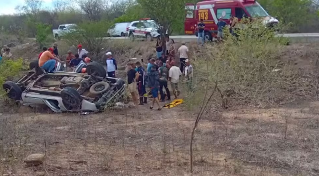 Carro sai da pista, capota e deixa uma pessoa morta e seis feridas no Sertão paraibano