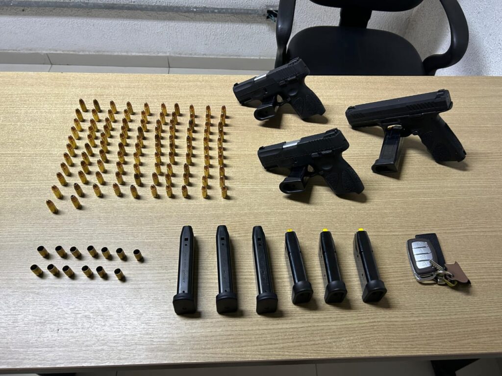Dentro do carro, os policiais apreenderam três armas de fogo, seis carregadores e diversas munições, sendo algumas já deflagradas e outras ainda intactas. O homem foi preso em flagrante e levado, junto com todo o material, para a Central de Polícia, no bairro do Geisel, onde permanece à disposição da Justiça.